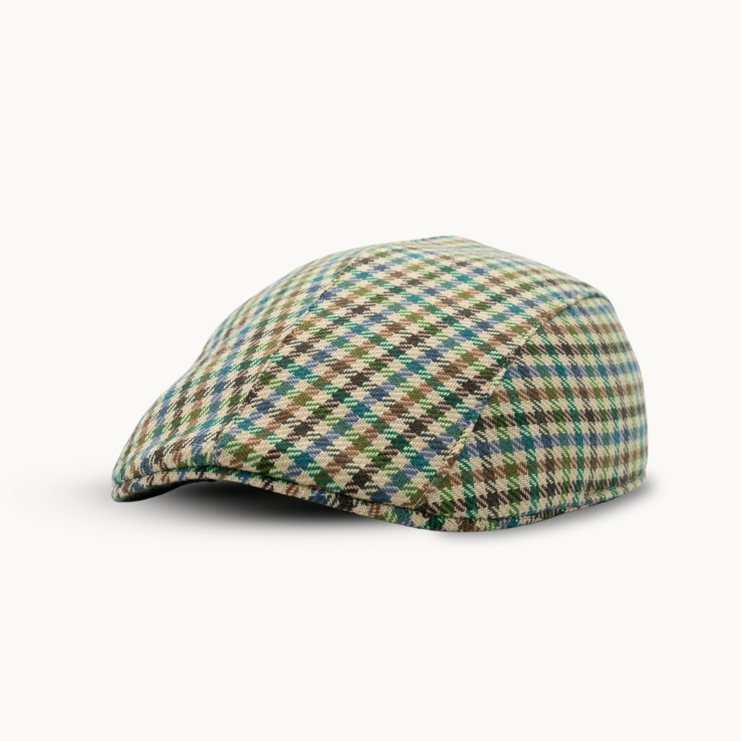 Gorra Campera de Lana a Cuadros Tweed Verde y Beige