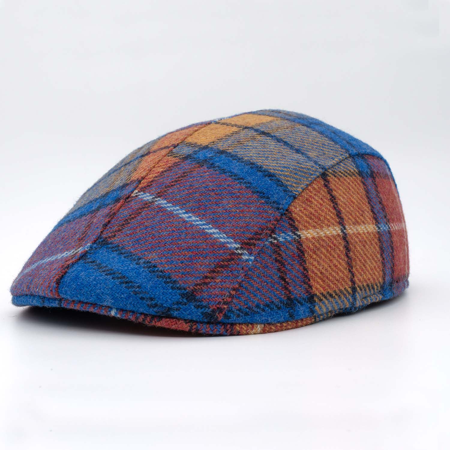 El patrón de cuadros tartán azules, acentuado por los vibrantes detalles en naranja y amarillo, añade dinamismo a este accesorio. Su diseño clásico se reinventa con una paleta de colores moderna, lo que hace que esta gorra sea perfecta para hombres y mujeres que aprecian la moda con personalidad.