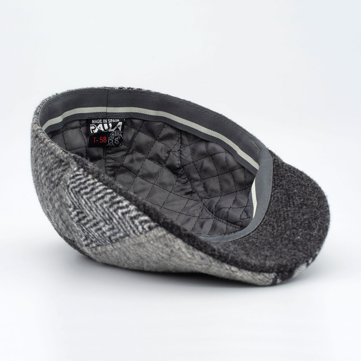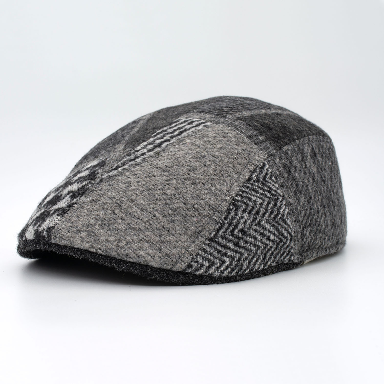 Gorra Campera Patchwork de Lana en Tonos Grises