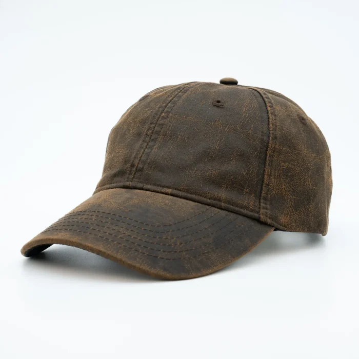 Confeccionada con una tela marrón encerada de alta calidad, esta gorra destaca por su diseño sofisticado y atemporal. El acabado encerado le aporta un aire vintage y auténtico, además de garantizar resistencia frente a la lluvia y otros elementos climáticos. Es perfecta para complementar atuendos casuales, paseos al aire libre o eventos informales.